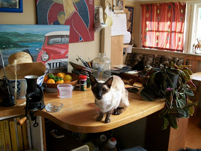Nigel the Siamese cat is dying, won't keep on any weight and it's a while since he brought home a rabbit or an eel. In his retirement he is working part time as an Artist's model, he's quite good at keeping still these days and just laying around....